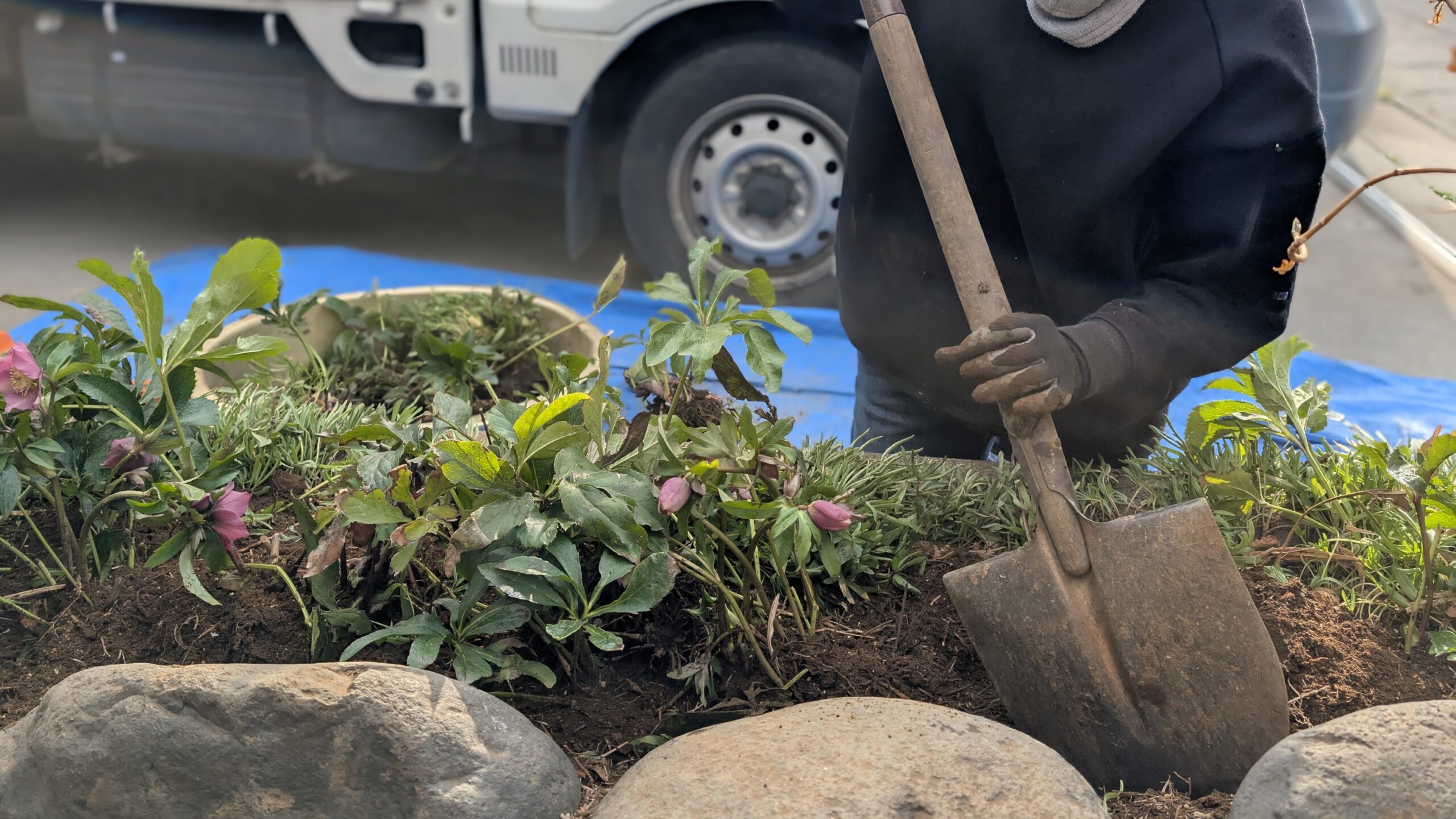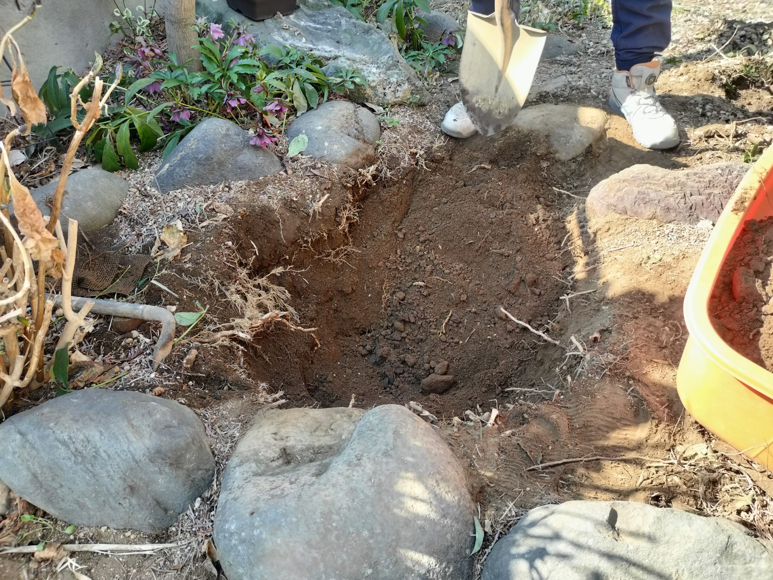 …と、周囲の植木の根が傷つかないよう作業しました。