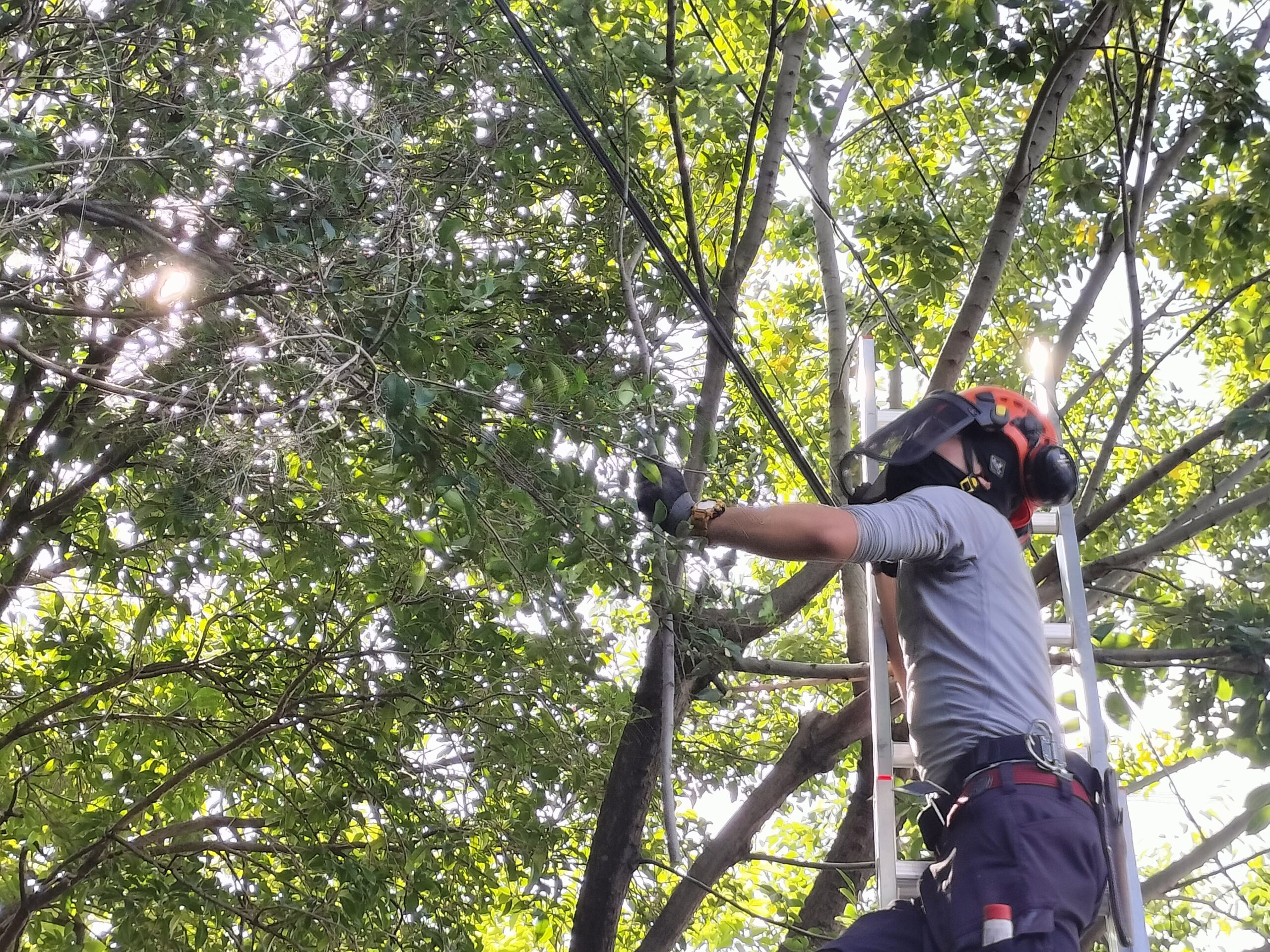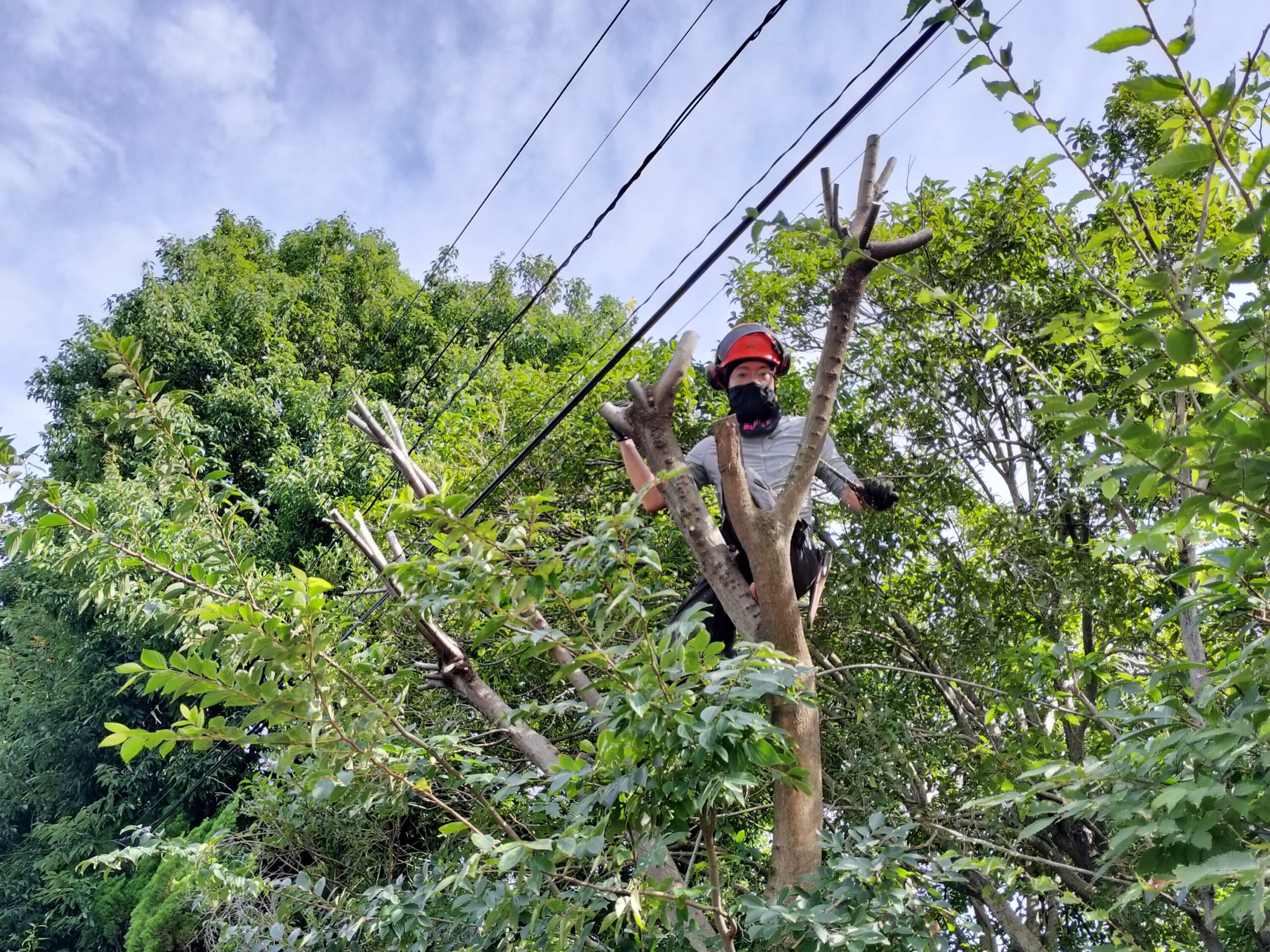 (まず電線に接触している枝を取り除きました)