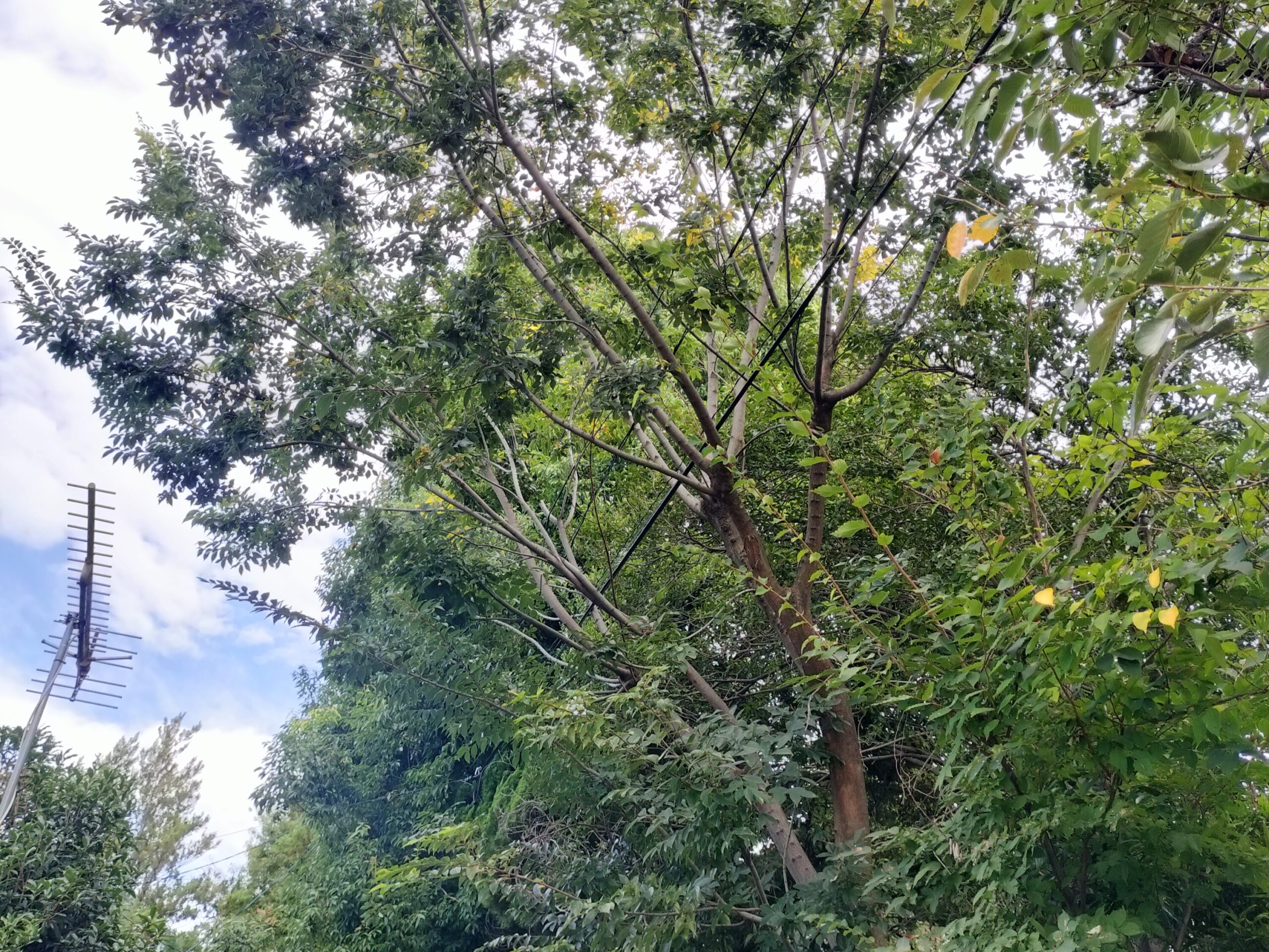 (まず電線に接触している枝を取り除きました)